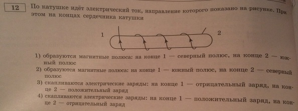 по правилу правой руки нужно обхватить соленоид правой рукой та чтобы четыре пальца были направлены по току то большой палец отставленный покажет направление лини магнитной индукции, следовательно линии направлены справа на лево т.е слева северный полюс а справа южный