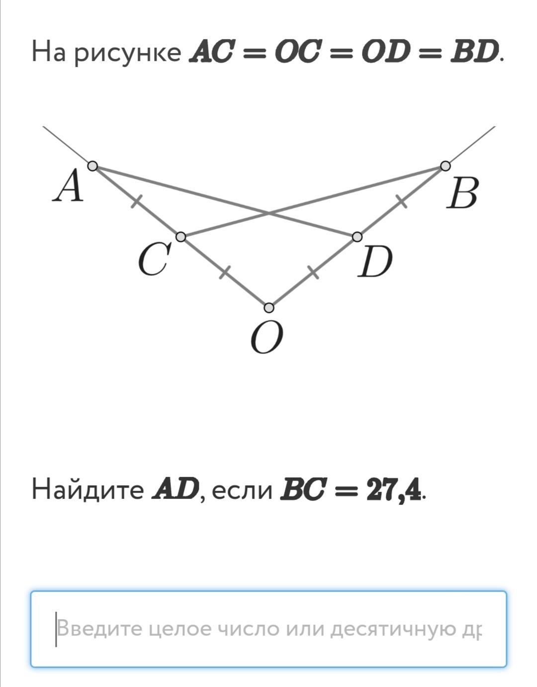 Треугольники CBO и ADO равны, по двум сторонам CO=OD, OA=OB, угол О общей