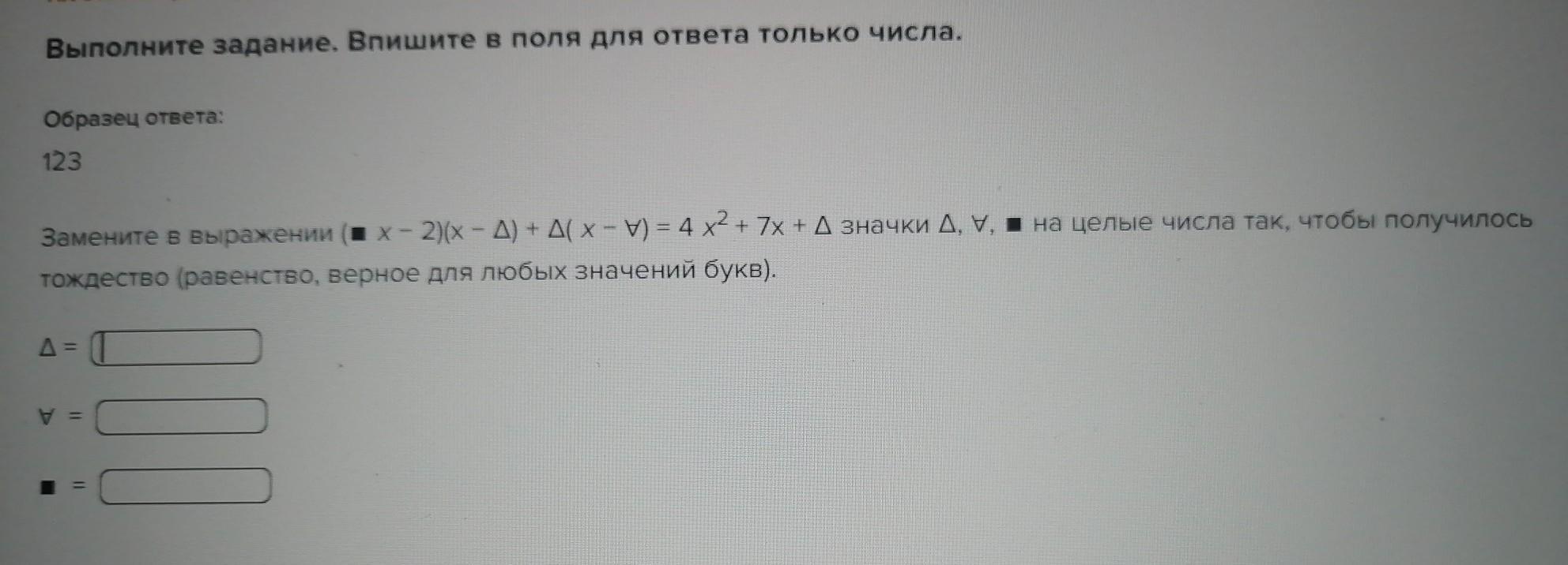 ■ × Х^2 - 2 × Х - ■ × Х × ♢ + 2 × ♢ + ♢ × Х - ♢ × А = 4 × Х^2 + 7 × Х + ♢