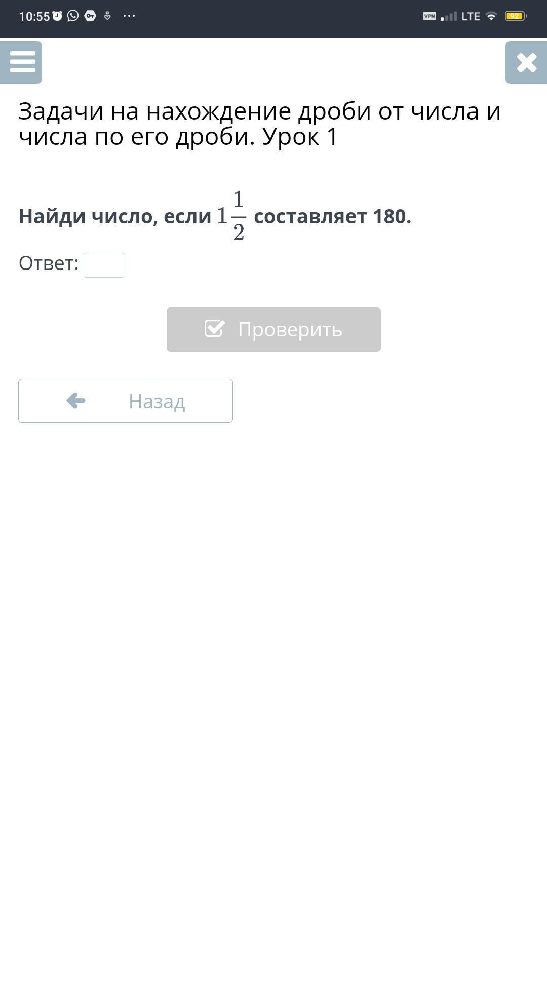 Найди число, если составляет 180. Ответ: Назад Проверить
