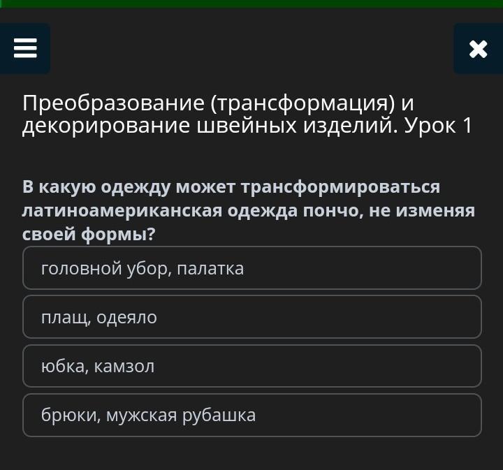 ПОЖАЛУЙСТА СРОЧНО Преобразование (трансформация) и декорирование швейных изделий. Урок 1