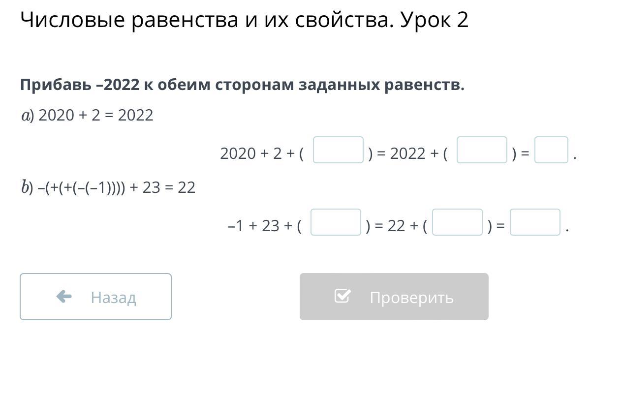 Прибавь –2022 к обеим сторонам заданных равенств.