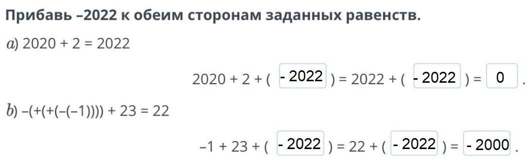 Прибавили -2022 к обеим сторонам равенств, получили: