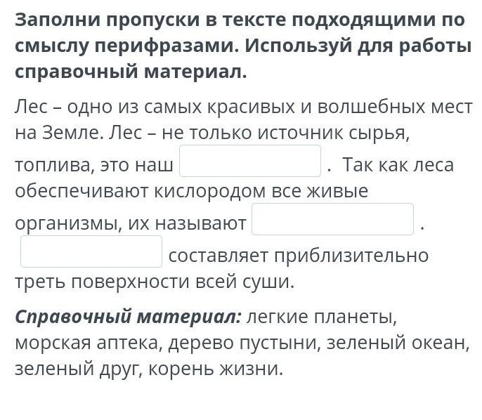 Заполни пропуски в тексте подходящими по смыслу перифразами. Используй для работы справочный материал.