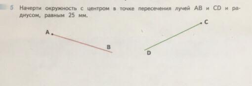 Начерти окружность с центром в точке пересечения лучей AB и CD и ра-