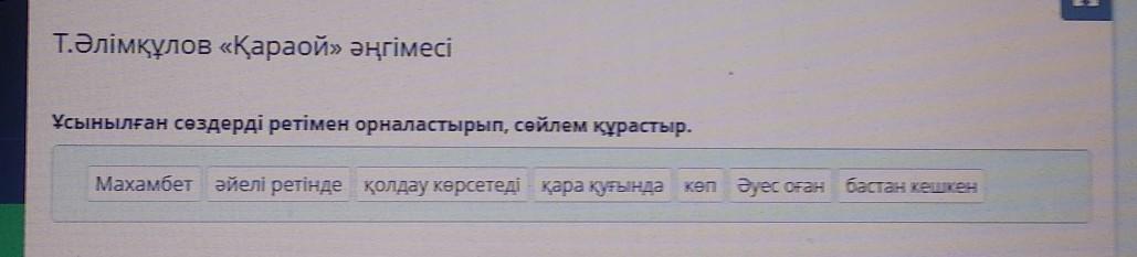 Ұсынылған сөздерді ретімен орналастырып, сөйлем құрастыр. Махамбет әйелі ретінде қолдау көрсетеді қара қуғында көп Әуес оған бастан кешкен. Дам миллион баллов