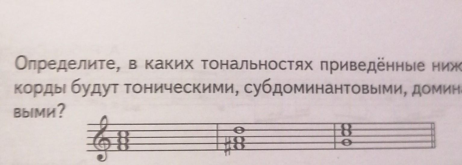 3 Определите, в каких тональностях приведённые ниже ак- корды будут тоническими, субдоминантовыми, доминанто- выми?