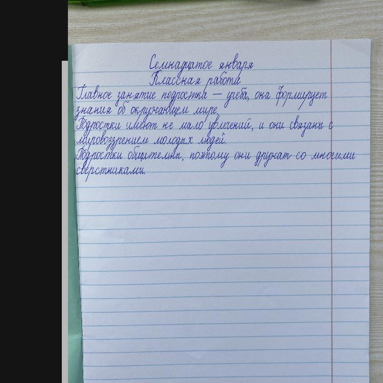 • Главное занятие подростка - учёба, она формирует знания об окружающем мире.