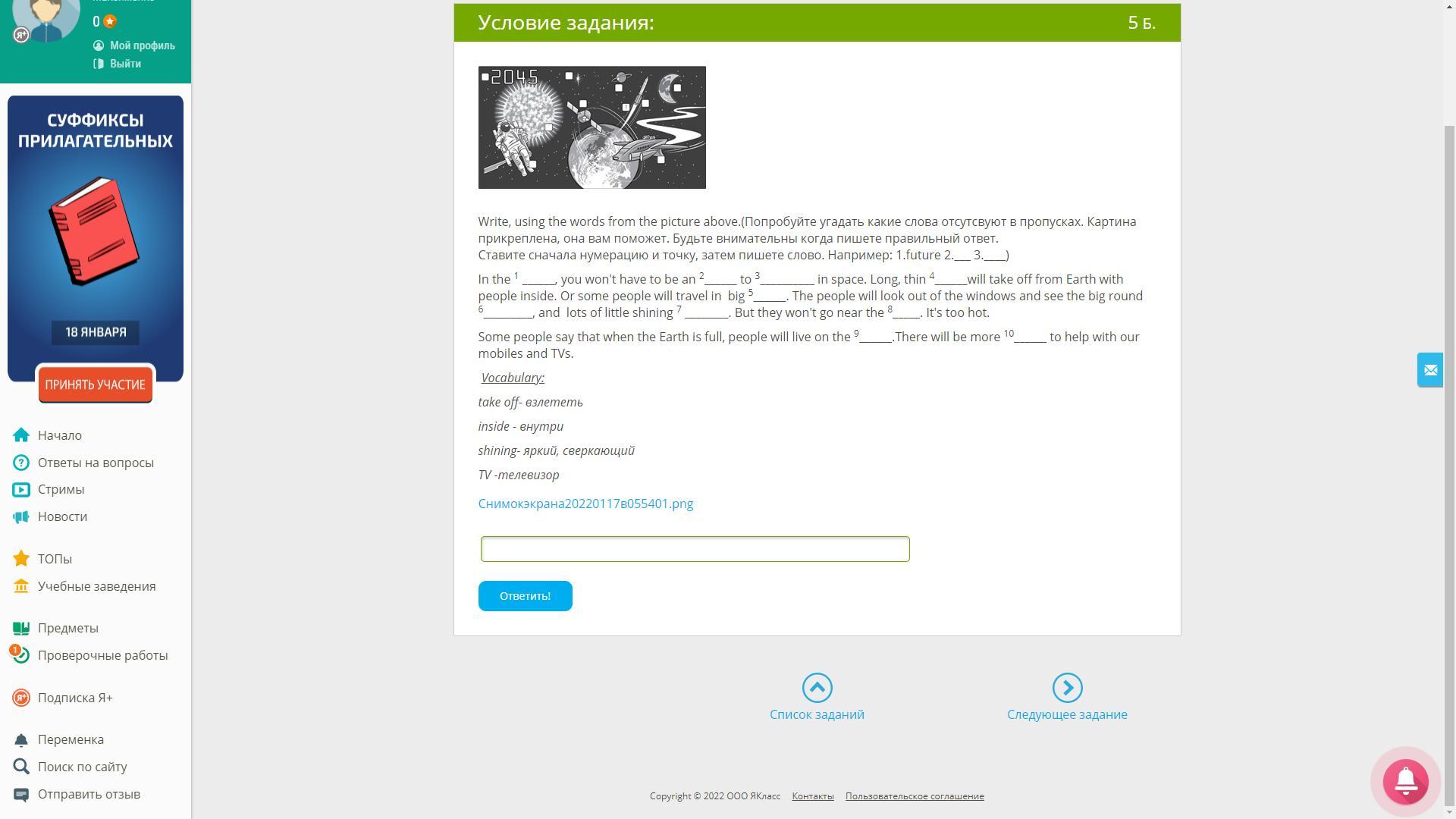 (1,5,9 future) (3,6,7 take off) (2 inside) (4,8 tv)