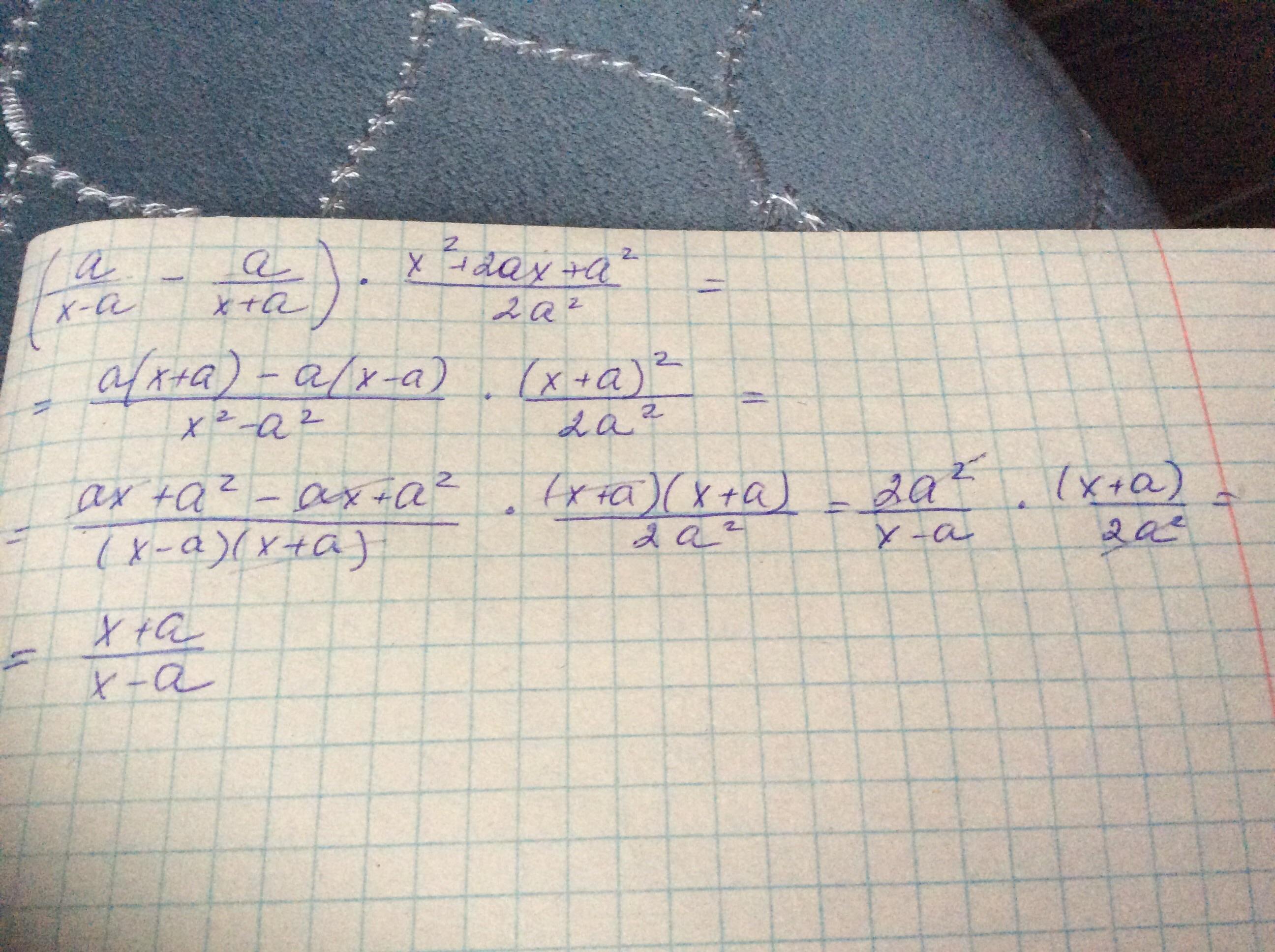 = ((х + а)*а - (х - а)*а)/(х - а)(х + а) =