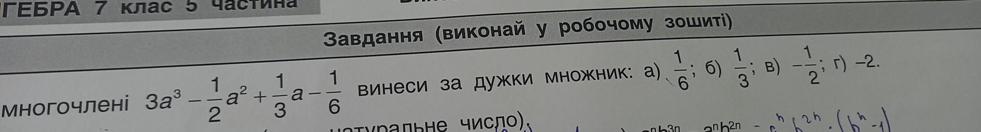 а) 1/6*(18a^3 - 3a^2 + 2a - 1) - разделить на 1/6 - это значит умножить на 6.