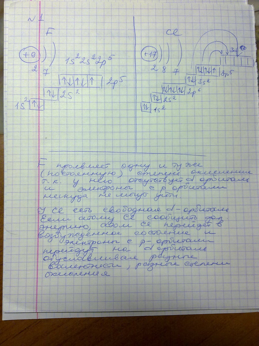 1.составьте электронные конфигурации атомов фтора и хлора. Объсните, почему фтор проявляет постоянную, а хлор переменную степень окисления.