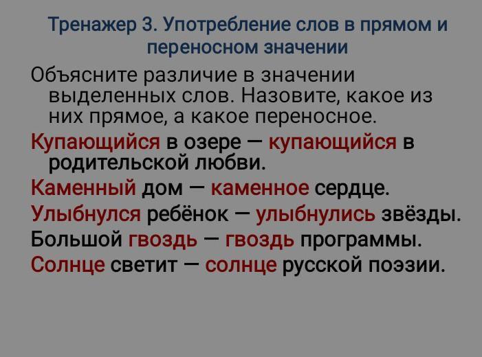 купающейся в озере- прямое значение, купающейся в родительской любви- переносное значение.