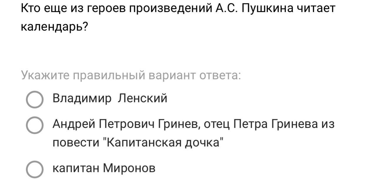 Ответ: 2. Андрей Петрович Гринёв, отец Петра Гринёва из повести «Капитанская дочка»