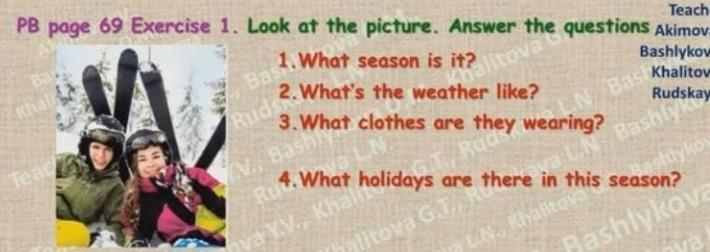 2)the weather is cold, snowy, sunny.(погода холодная, снежная и солнечная)