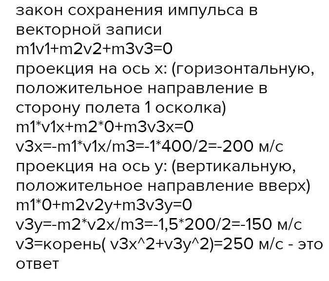 Пиротехнический снаряд был запущен вертикально вверх. Из-за неисправности вместо красочного фейерверка в верхней точке траектории снаряда его разорвало на два осколка массами 3 и 2 кг. Впоследствии осколки нашли на расстоянии 6.5 км друг от друга. Определите, на какой высоте произошел взрыв, если скорости осколков сразу после взрыва имели только горизонтальные составляющие, а их суммарная кинетическая энергия в этот момент была равна 34 кДж. Ускорение свободного падения принять равным 10 м/с2. Сопротивлением воздуха пренебречь. Ответ приведите в километрах, округлив до ближайшего целого.