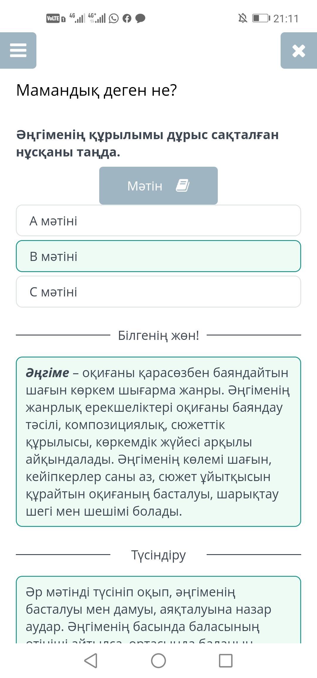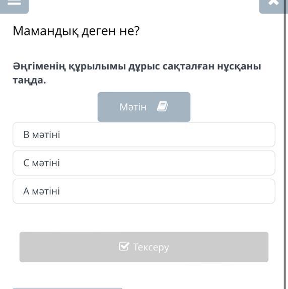 Әңгіменің құрылымы дұрыс сақталған нұсқаны таңда.
