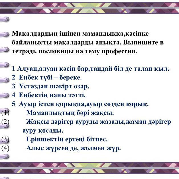 Алуан, алуан кәсіп бар, таңдай біл де талап қыл.