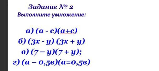 В) (7-y)(7+y) = 49 - 7у + 7у - у² = 49 - у²