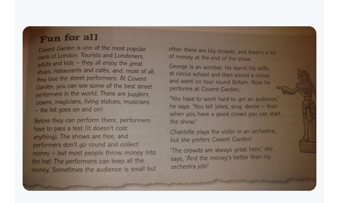 a) studies circus skills. b) is touring Britain. c) usually performs in London.