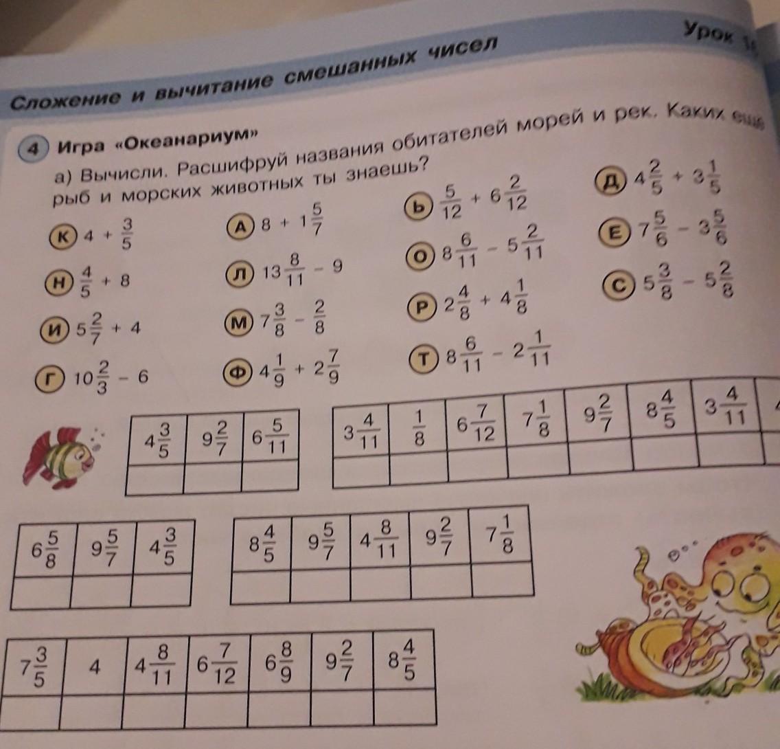 вычисли. Расшифруй названия обитателей морей и рек. Каких еще рыб и морских животных ты знаешь?