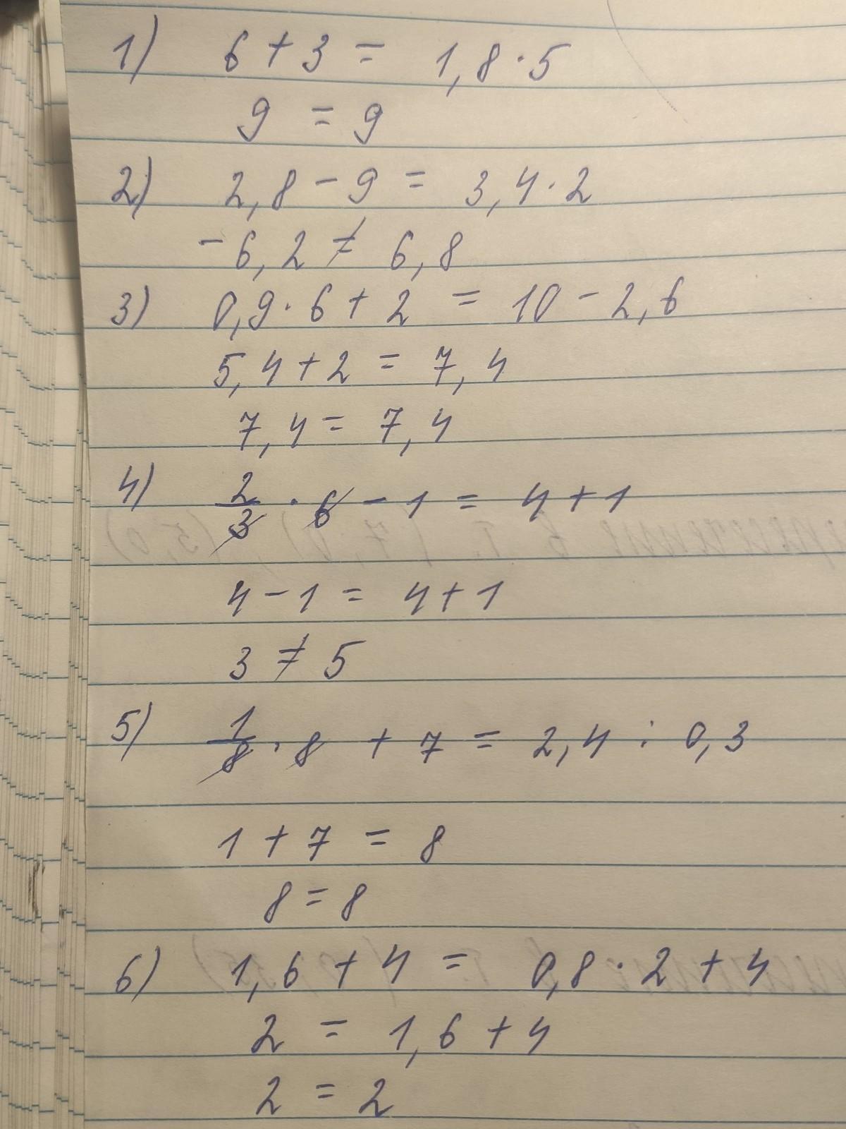 Верные числовые равенства под номерами: