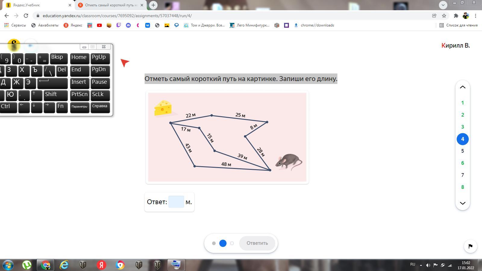 по середине конечно не 54, а 71. И этот путь короче остальных
