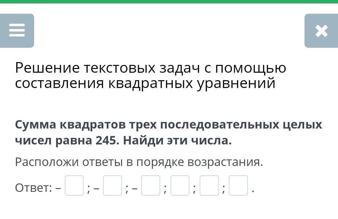 Если числа последовательные, то к каждому следующему числу будет добавляться 1. Пусть первое число=х², тогда второе число=(х+1)², а третье=(х+2)². Зная, что их сумма равна 245, составим уравнение: