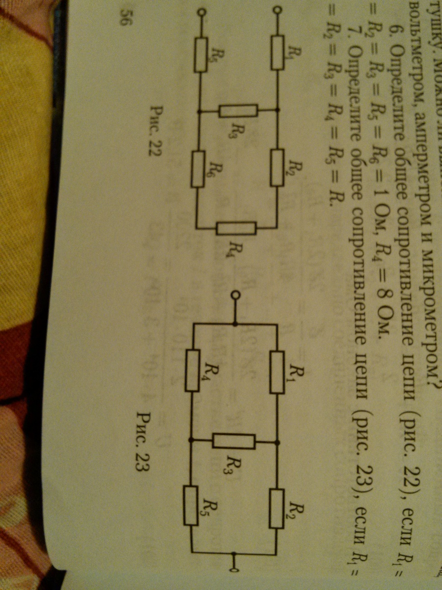 7) можно заметить что в цепи все резисторы одинаковы, ото значит что ток через поперечный резистор не пойдет и его можно выкинуть ( он не работает)