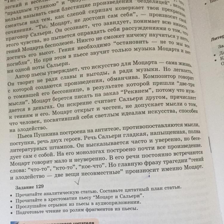 Упр 129 . прочитайте аналитическую статью. Составьте цитатный план статьи. Моцарт и Сальери