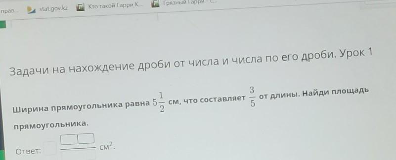 ширина прямоугольника равна 5½ см, что срстовляет ⅗ от длины. Найди площадь прямоугольника