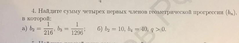 s₄=b₁*(q⁴-1)/(q-1)=(1/36)*(1/1296-1)/(1/6-1)=259/7776