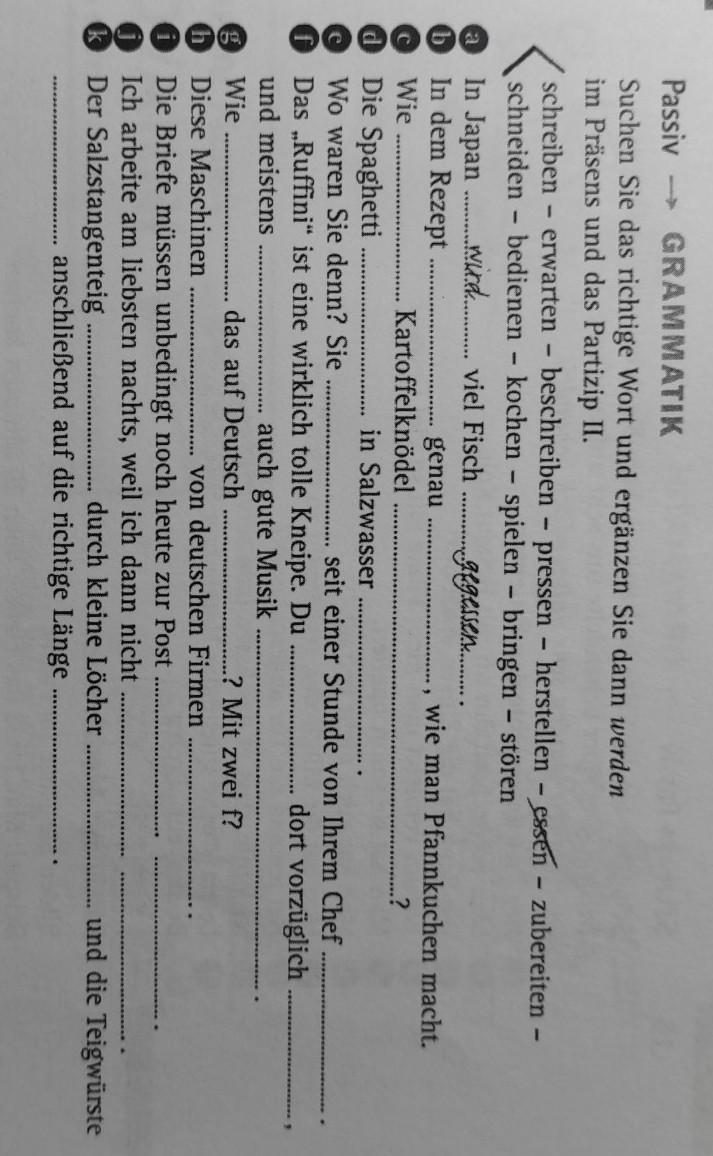 d) werden (wird) ... gekocht - die Spaghetti м.б. и в ед. и мн.числе