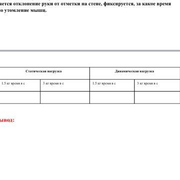 3.Наблюдается отклонение руки от отметки на стене, фиксируется, за какое время произошло утомление мышц.