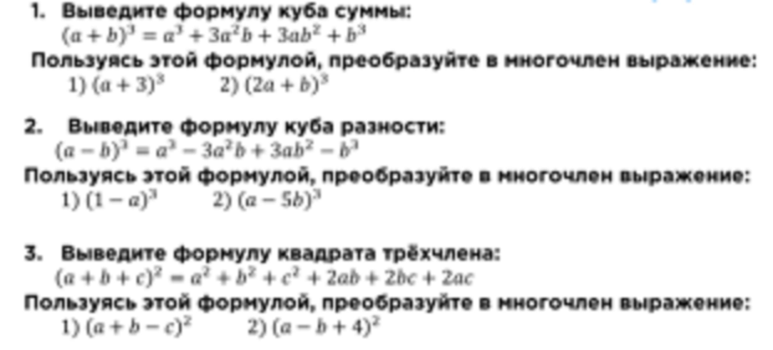 1. (а + b)³ = (a + b)² * (a + b) = (a² + 2ab + b²) * (a + b) =