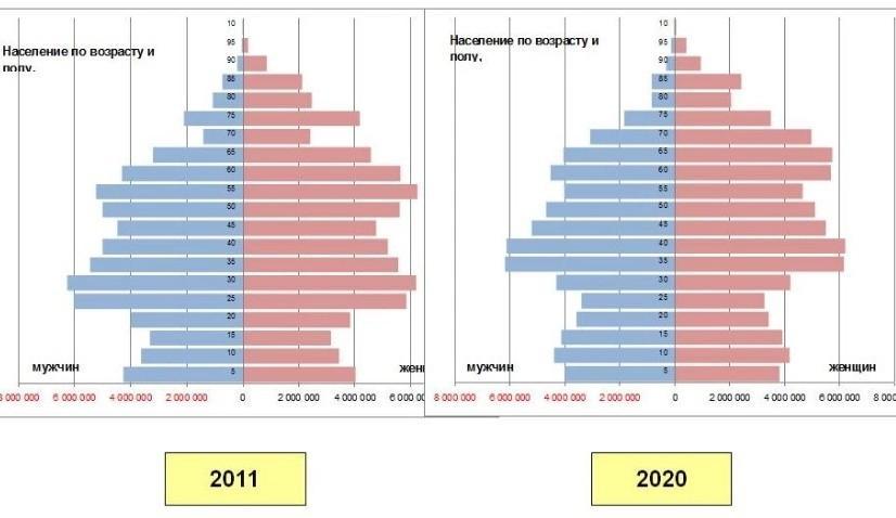 Составьте план половозрастной пирамиды населения. Опишите обе пирамиды. Определите к какой стране принадлежит эта пирамида? /Мне кажется, что это Россия/
