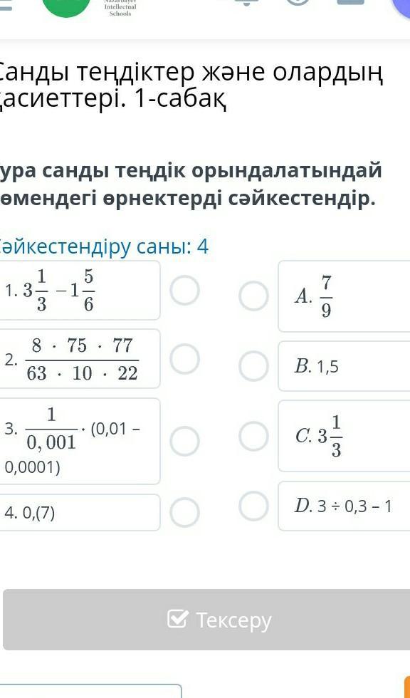 1 . 3 1/3 - 1 5/6= 10/3- 11/6= 20/6 - 11/6= 9/6= 1 1/2= 1,5 ответ : В