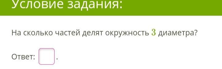 Формулировка очень нечёткая, скорей литературная, чем математическая: 1) Не указано, разные ли диаметры. 2) Чётко не определено, что такое "часть окружности". В простейшем случае, если диаметры РАЗНЫЕ, а ЧАСТЬ-это дуга с концами на концах диаметра, не содержащая концов других диаметров, то, очевидно же, что на 6.
