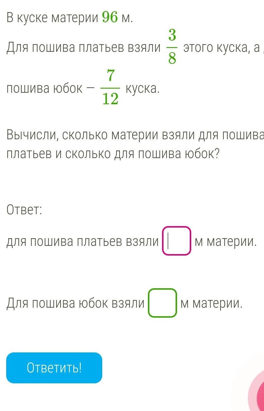 96 * 7 / 12 = 56(м) - юбки