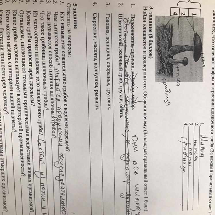 В 5 задании: Какие грибы вредят дереву. Это грибы паразиты,трутовик