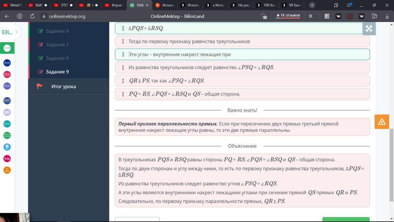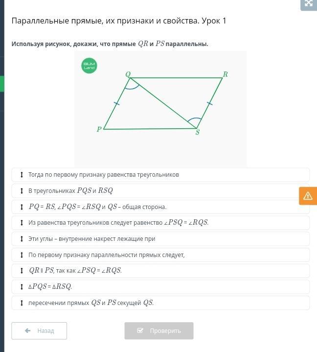 Используя рисунок, докажи, что прямые QR и PS параллельны.