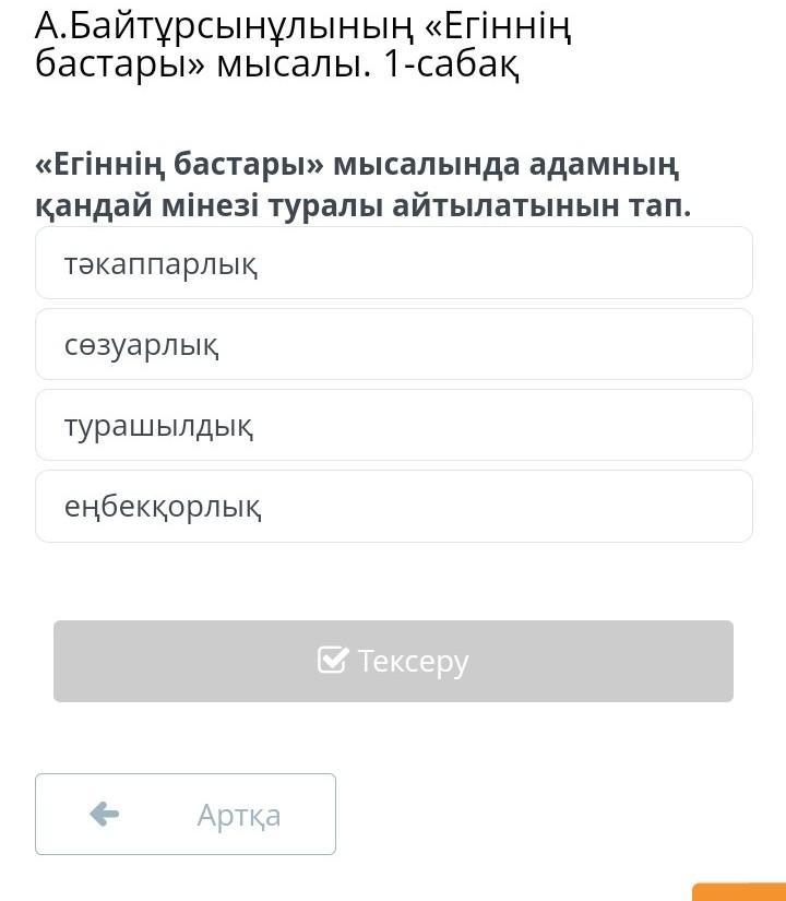 А.Байтұрсынұлының «Егіннің бастары» мысалы. 1-сабақ Егін бастары мысалында адамның қандай мінезі туралы айтылатыны тап.