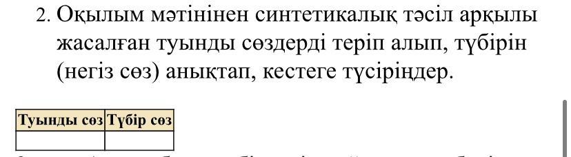 3. Оқылым мәтінінен синтетикалық тәсіл арқылы жасалған туынды