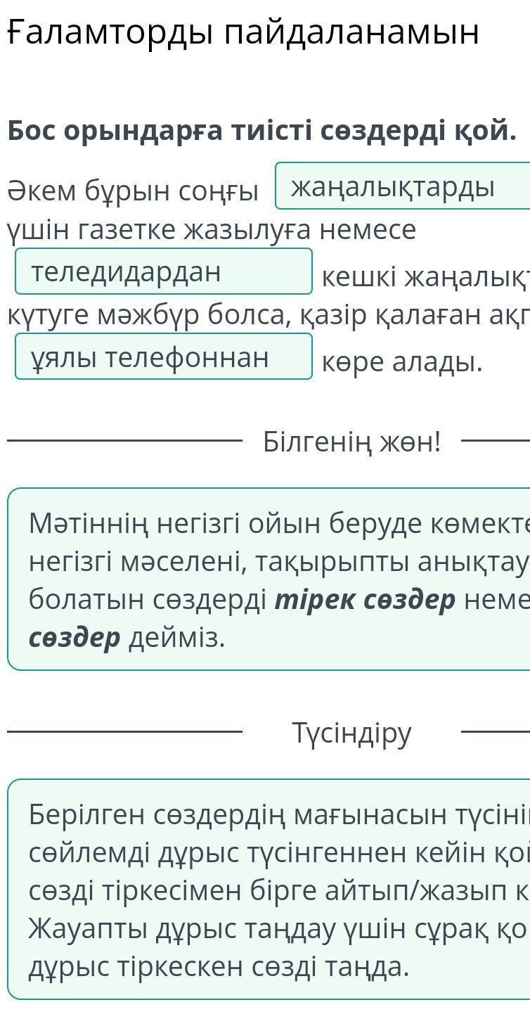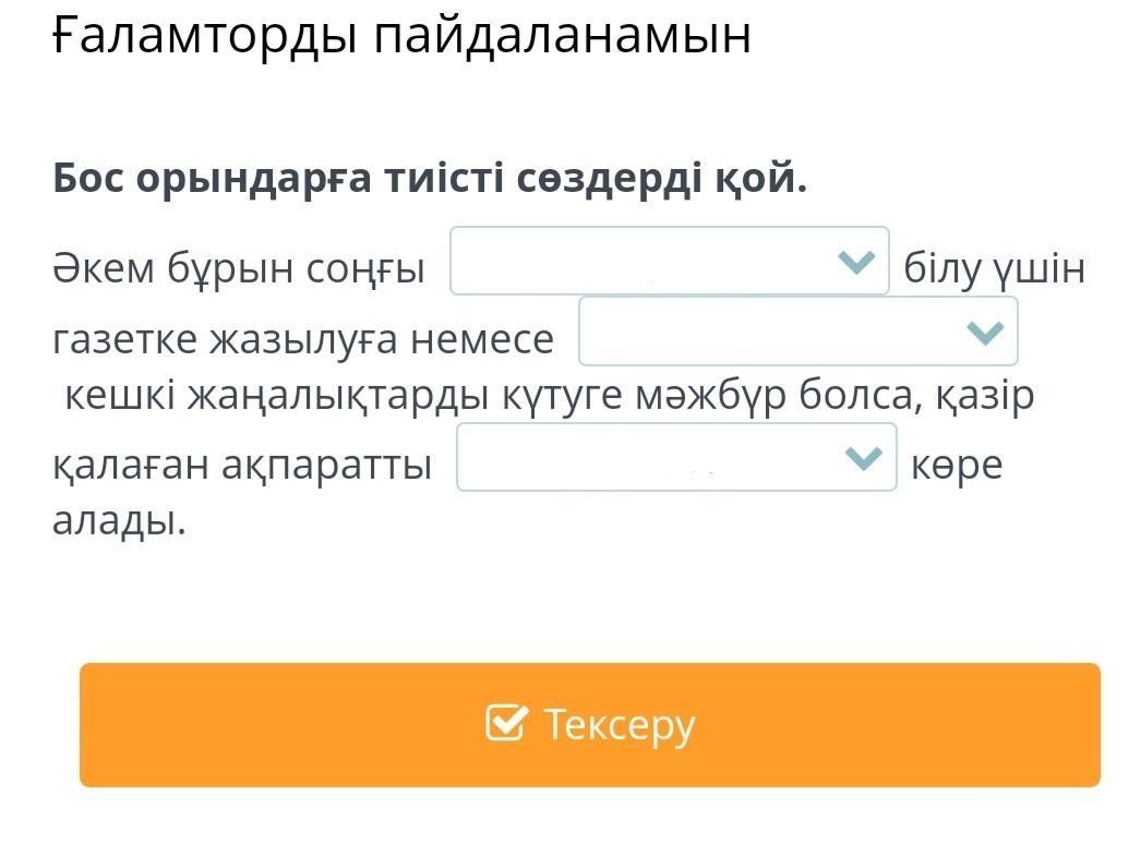 кешкі жаңалықтарды күтуге мәжбүр болса, қазір қалаған ақпаратты