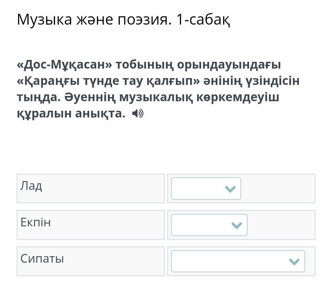 3) сипаты: куанышты конилди , мунды, лирикалык