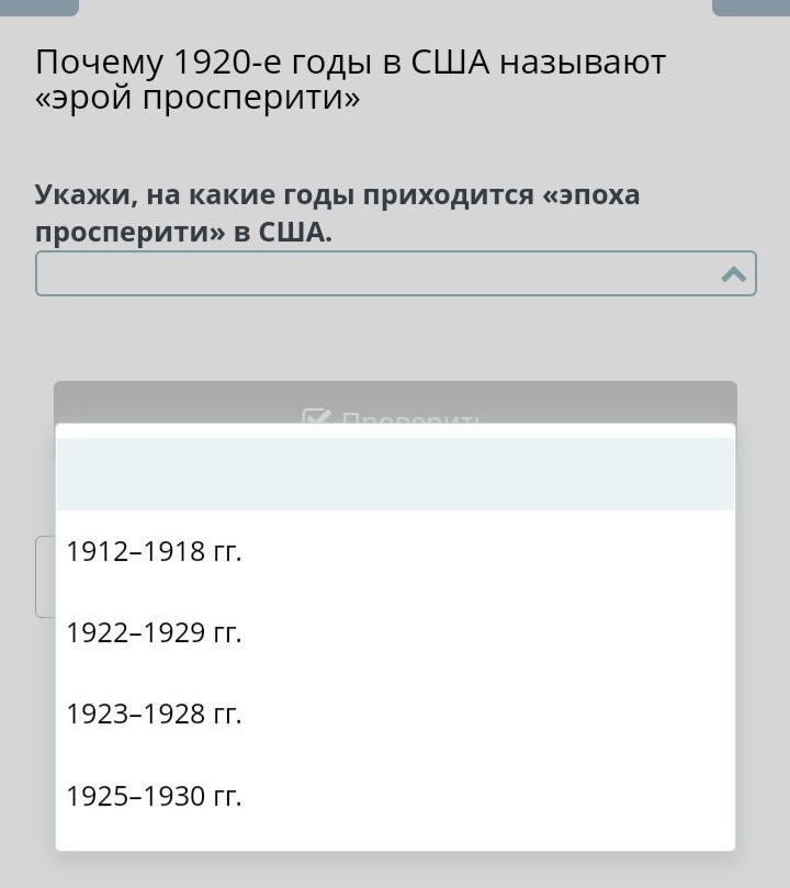 Почему 1920-е годы в США называют «эрой просперити» Укажи, на какие годы приходится «эпоха просперити» в США. Назад Проверить