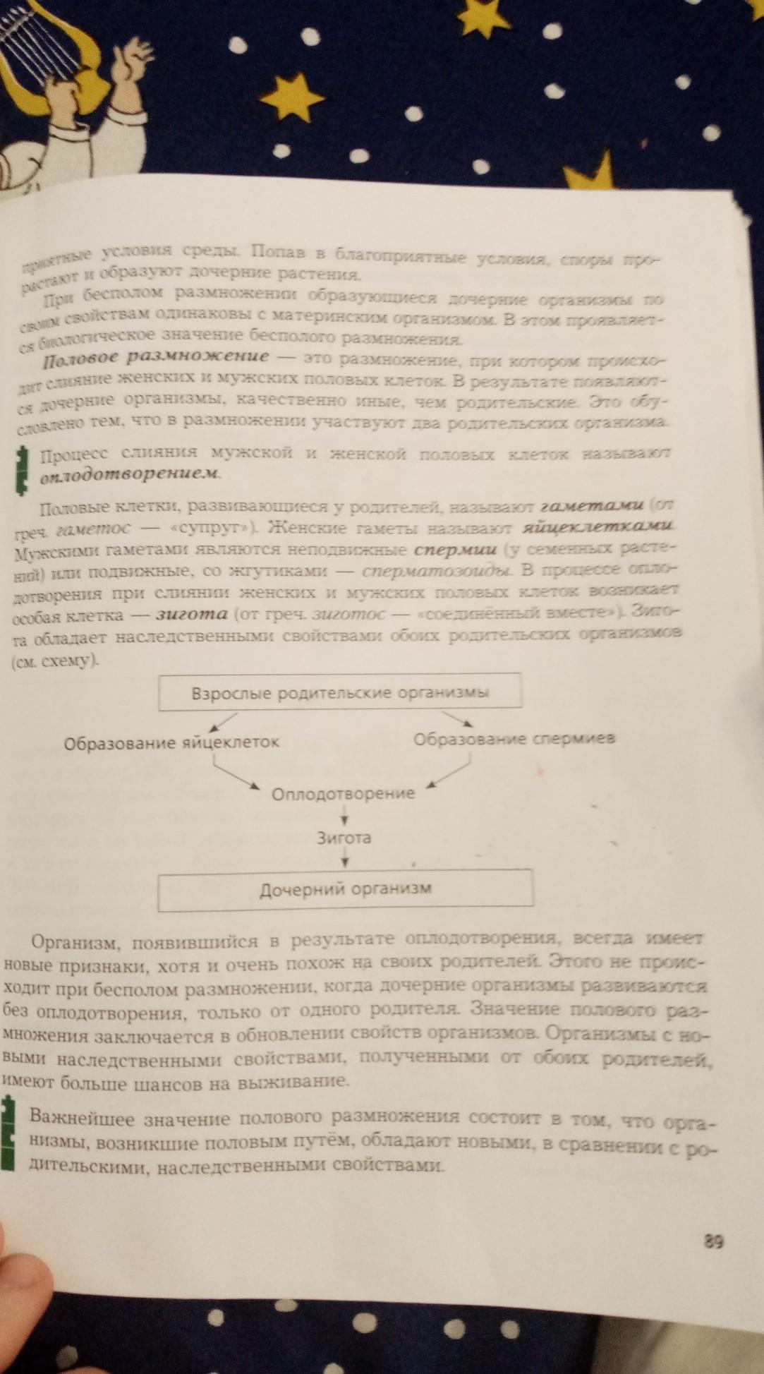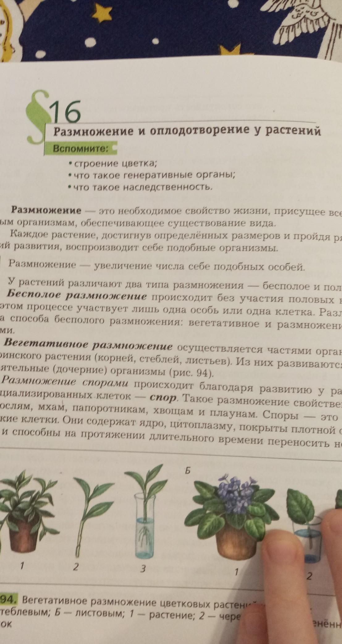 В фото, странички учебника, 6 класс, 16 параграф размножение
