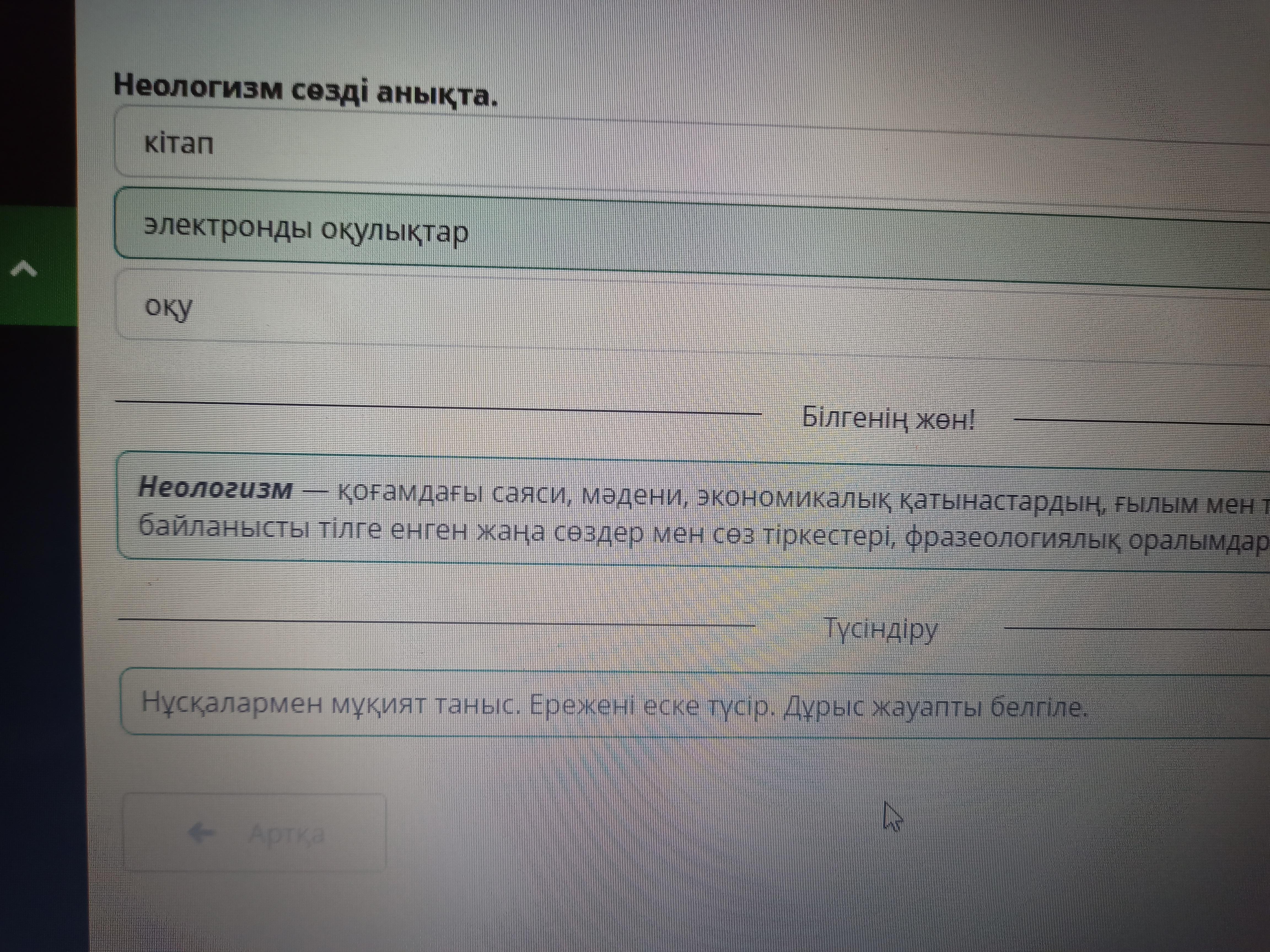 Ғаламторды пайдаланамын Неологизм сөзді анықта. электронды оқулықтар оқу Кітап - Артка