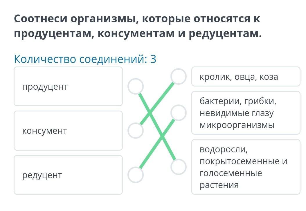 Соотнеси организмы, которые относятся к продуцентам, консументам и редуцентам.