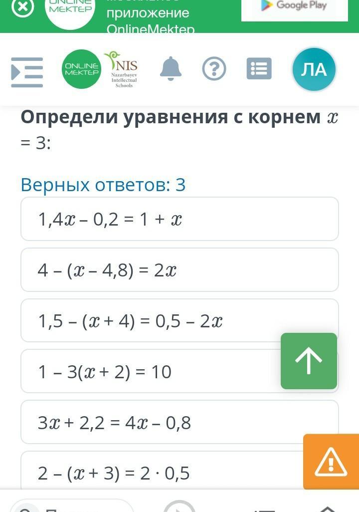Ответ: уравнение с корнем х= 3 это 1) 3) 5)